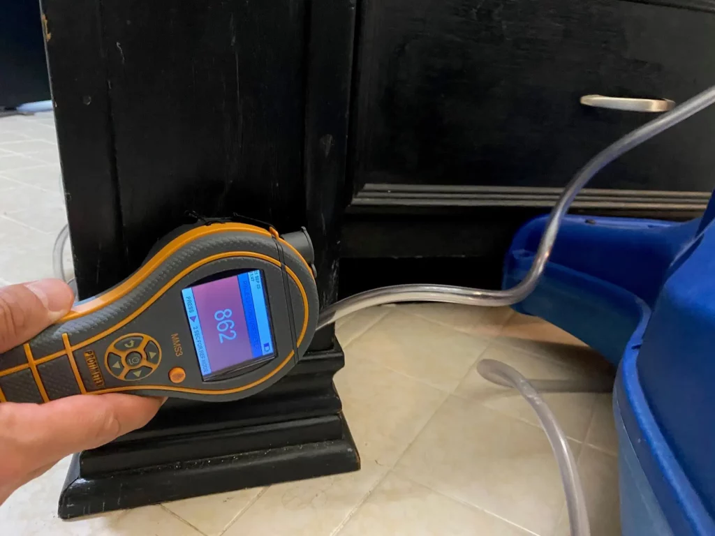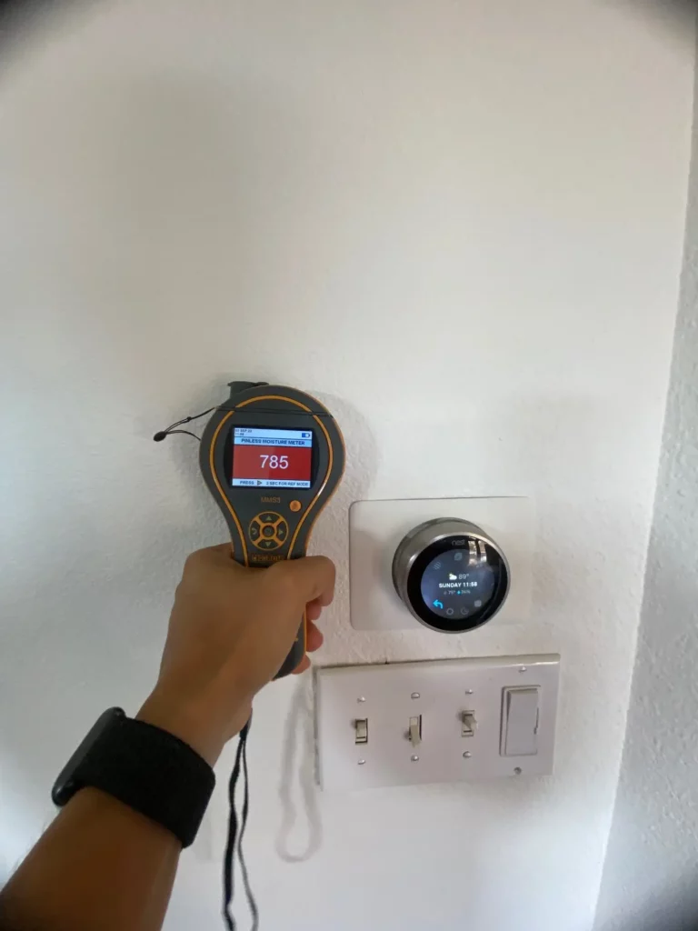 Before we're done, we verify that everything is actually dry using moisture meters. We don't leave until we're sure the job is finished right.